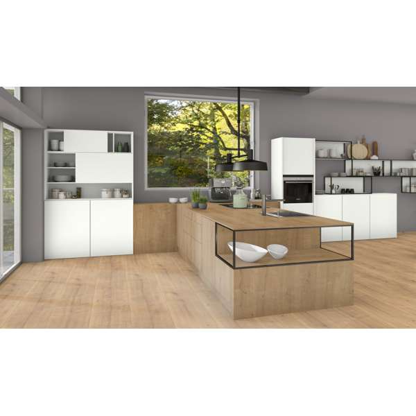 Hamilton hrast natur je markantan dekor hrasta autentičnog izgleda s upečatljivim tamnim inkluzijama, čvorovima i klasično prirodnim koloritom. Motiv dekora dolazi od poda i ostavlja dojam čitavih podnih dasaka čak i kada se koristi za namještaj. U dizajnu namještaja ovaj se dekor već udomaćio, a često se kombinira s jasno bijelom kao umirujućom suprotnosti. Prikladan je i za velike površine u uređenju interijera jer zbog XL formata motiva nema ponavljanja markantnih elemenata dekora. Struktura ST10 Deepskin Rough osigurava taktilnu autentičnost dekora.
