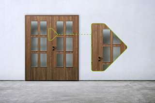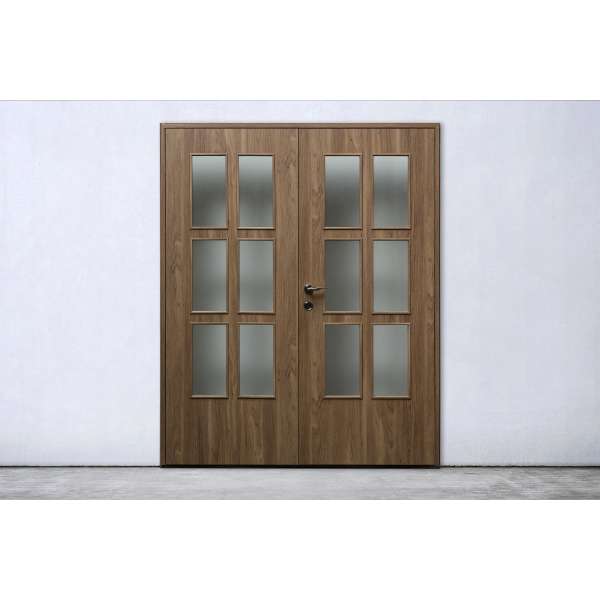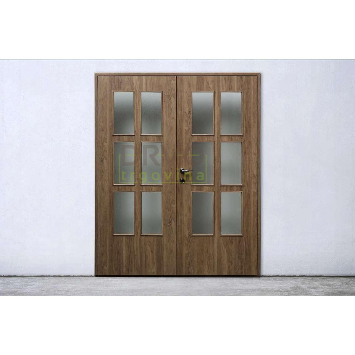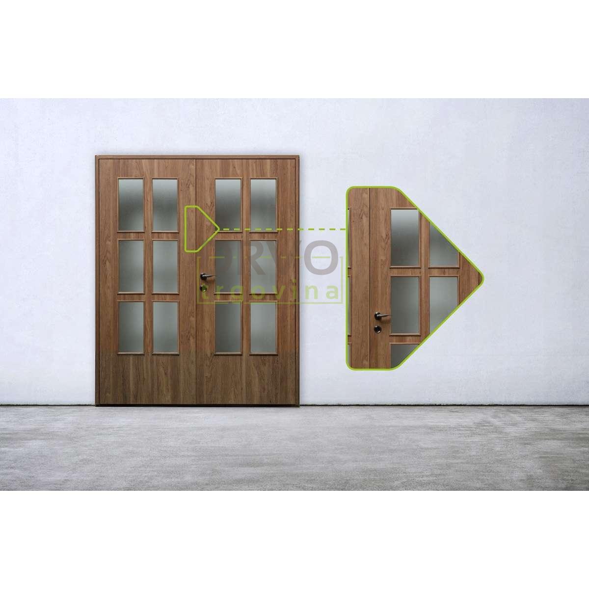 Dvokrilna sobna vrata sa staklom po mjeri s obuhvatnim dovratnikom uz mogućnost izbora zaobljenog ili kockastog dovratnika.
