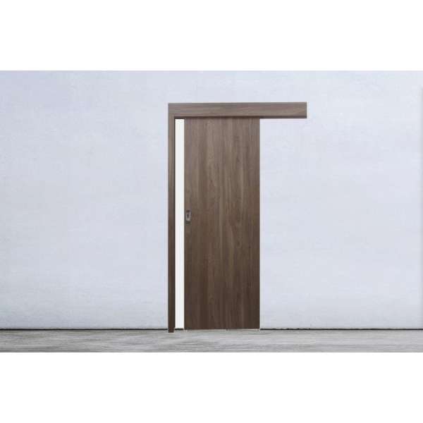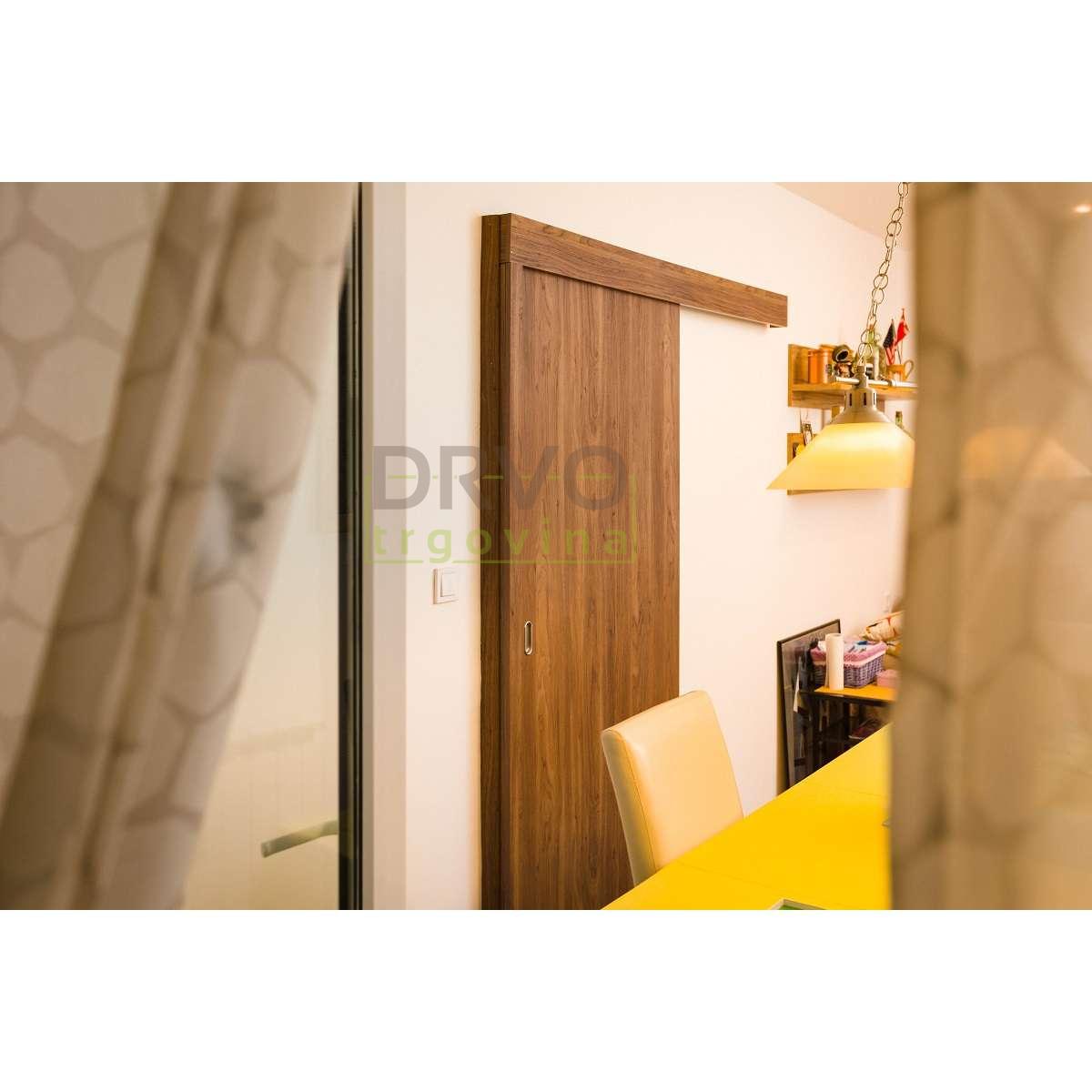 Sobna klizna vrata s maskom i vodilicom izrađena po mjeri. U ponudi široki izbor dekora. Vodilica u istom dekoru kao krilo. Rok isporuke je 10 - 12 tjedana.